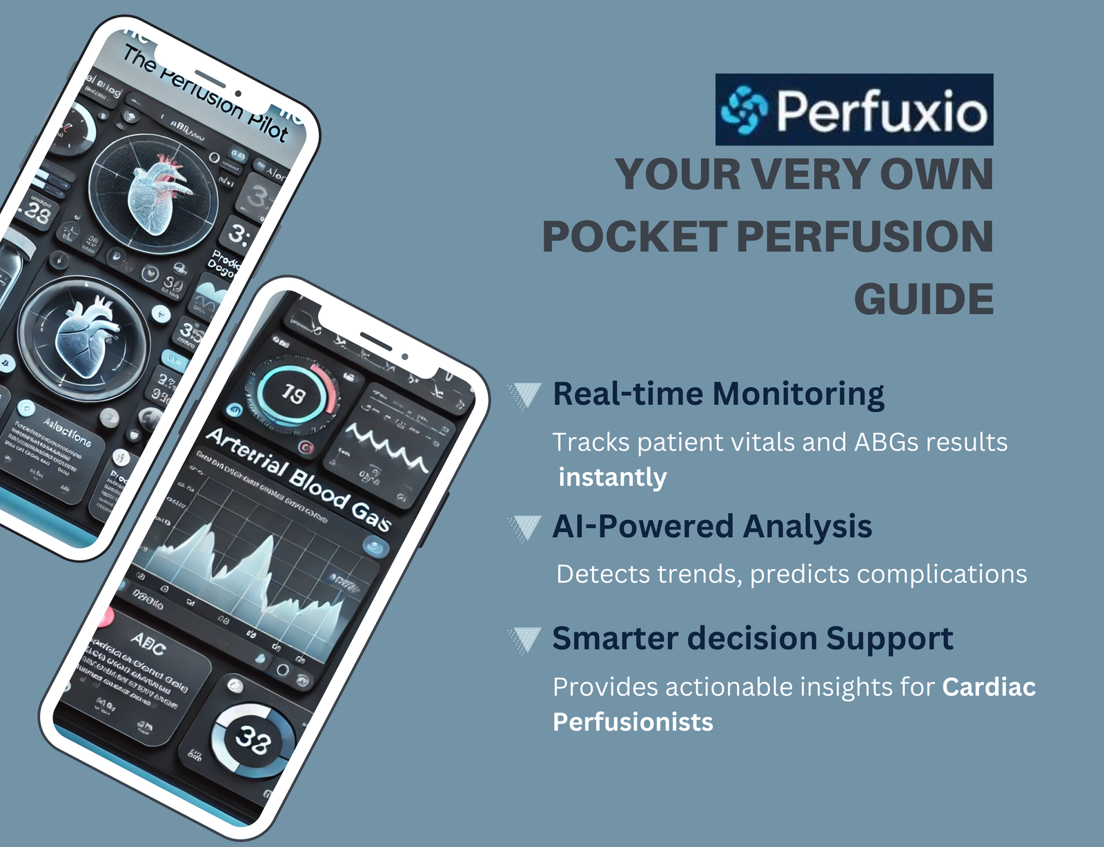 Perfuxio provides actionable insights to perfusionists and clinicians, reducing human error and improving decision-making efficiency.